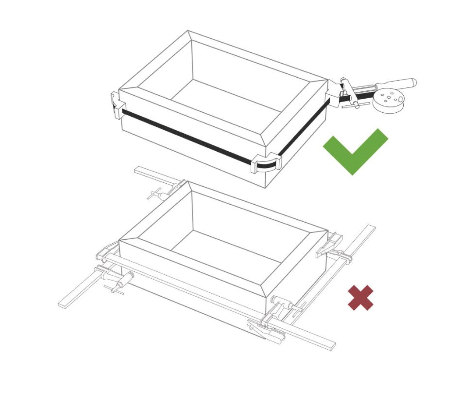 Piher lentes spīles paredzētas montāžas darbiem, lai precīzi un vienmērīgi saspiestu taisnstūra rāmi savienojumos. Spīles ļauj ātri un efektīvi noturēt detaļas vietās tās līmējot, bez nepieciešamības izmantot vairākas atsevišķas skavas vai spīles.